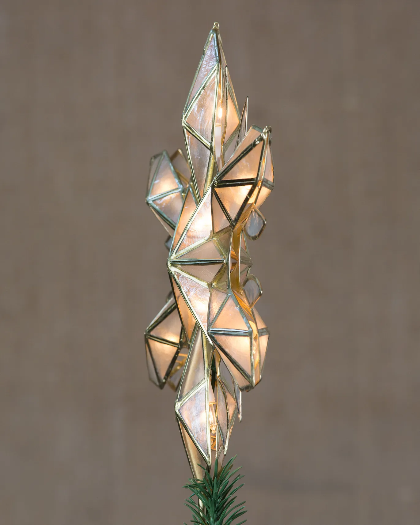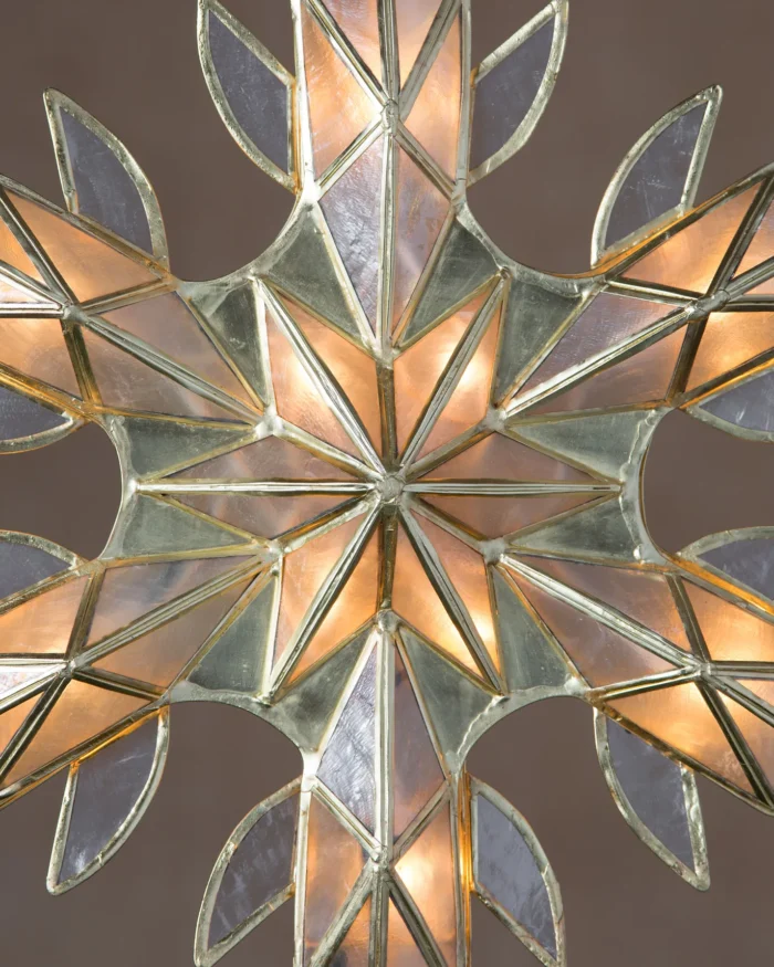 Fabriqué avec de la nacre de Capiz dans le respect des techniques traditionnelles, notre cimier en forme de flocon apporte une touche d’élégance à votre décor. Son support intégré facilite l’installation et son design à double face vous assure un effet ravissant sous tous les angles. Pré-illuminé avec des ampoules LED, ce cimier est magnifique de jour et encore plus grandiose de nuit.